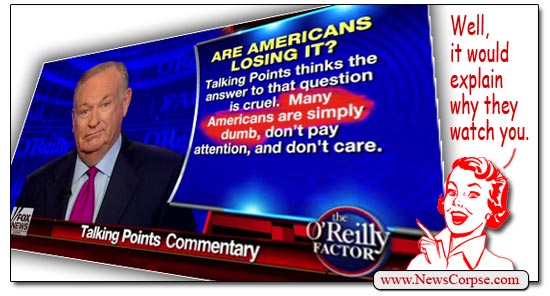 “Talking Points believes the answer to that question is kind of cruel. Many Americans are simply dumb. They don’t know what’s going on. They don’t pay attention. They don’t care.”