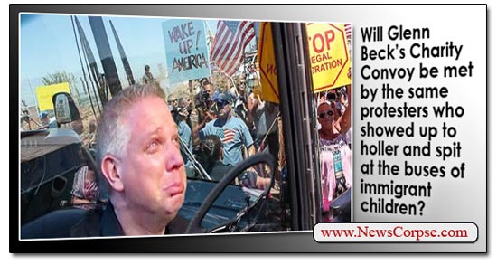 Much is being made of reports that politi-vangelist Glenn Beck is planning to deliver food and toys to the immigrant children that are suffering under harsh conditions in detention facilities in Texas. Beck’s convoy is expected to roll into McAllen, Texas this weekend. One wonders if it will be met by the same protesters who showed up to holler and spit at the buses of children seeking safe refuge.