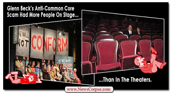 Yesterday marked the long-awaited (by lobotomized tea-bots) exhibition of Glenn Beck’s latest scam to fleece his dimwitted disciples. Beck hosted a nationwide promotion for his anti-Common Core book and philosophy in 600 movie theaters that linked to his live simulcast from Dallas.