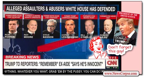 That pretty much says it all. But if you’d like a primer of the repulsive and deviant culture that Fox News nurtures, look no further than the list of perverts who were forced out due to “inappropriate” behavior. Then imagine how many others are still there who haven’t yet been caught. And the same can be said of this White House where the President predictably sides with abusive men over their victims.