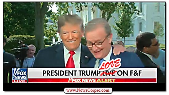 Watching from his bathroom window where he tweets his official presidential pronouncements, Trump saw his pals from Fox and Friends on the White House lawn and went downstairs to play. Unfortunately, he also ran into those meanies from the other news networks who keep insisting on asking him real questions, rather than the tongue baths he gets from Fox News.