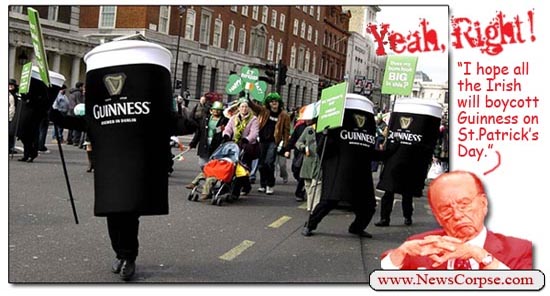 But perhaps the most disturbing part of Murdoch’s tweet is his suggestion that Guinness be boycotted due to their having stood up for equality. Does he really believe that Irish Americans, or any other celebrant, is going to abstain from drinking the most famous Irish beer in the world on St. Patrick’s Day? The only explanation for such a stupendously idiotic remark is that he is either drunk or senile.