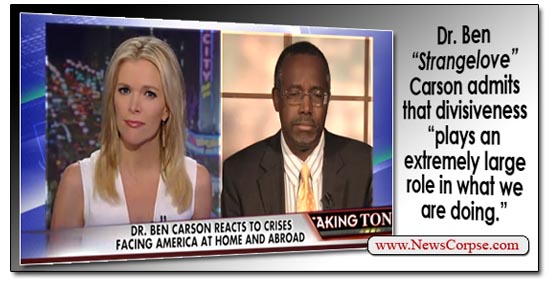 The segment was mostly a paper thin discourse on vague apocalyptic generalities that provided scant insight into anything other than Carson’s embarrassingly poor grasp of history and government. His main points were cliched right-wing admonitions against progressivism and straying from Christian faith. And in the midst of this harangue, Carson made a note of the risks of divisiveness: