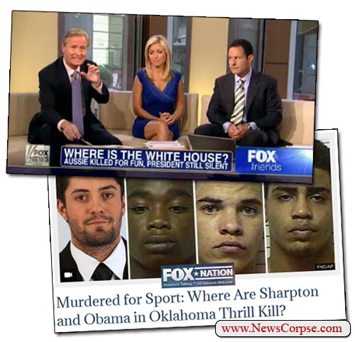 In the Lane case, the perpetrators were identified quickly, arrested, and remain incarcerated awaiting trial. So justice is being served. It is proceeding in an appropriate manner without the need for the public to intercede. So what exactly do the folks at Fox News want Sharpton and Obama to say? Do they now believe that every crime ought to elicit a comment from the White House? Or is it just the ones that conservatives can spin as racially inflammatory?