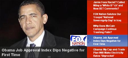 At the end of that article I concluded that “Rasmussen has emerged as the number one most likely pollster to be interviewed on Fox News.” That has been true for some time, but now Fox is tightening their embrace of the partisan pollster by misrepresenting the already skewed results. Here is their story from The Fox Nation announcing that “Obama Job Approval Index Dips Negative for First Time” :