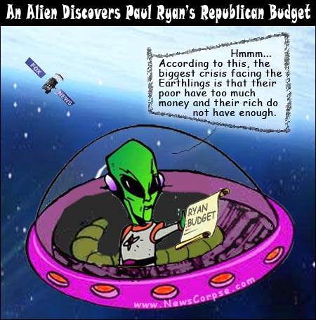 If an alien exploring the Earth were to draw conclusions about what the most pressing problems are for its inhabitants based on the Ryan budget, it would probably look something like this:
