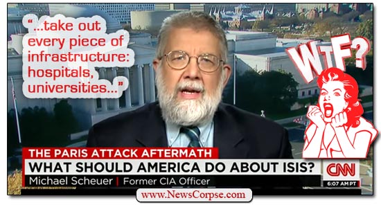 - K.T. McFarland: President Obama thinks that climate change is the greatest strategic and geological and existential threat to our future. You know, here we are — and the irony, if it were not so tragic it would be funny — here we have ISIS, which is attacking with suicide vests and Kalashnikovs and potentially chemical weapons in the French water supply. What are we doing? We’re going to fight ISIS. We’re going to have windmills. We’re going to have solar panels. We’re going to show them. It’s just really — all it does is it gives encouragement to the terrorists who feel that they have been selected and chosen by Allah to establish the caliphate and kill everybody who disagrees with them.