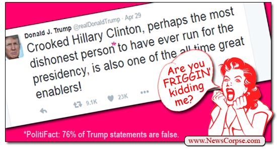 That was the introduction to O’Reilly’s rant about how “far left violence is out of control in America,” and how liberals are responsible for it, but as for supporters of his BFF “Certainly some voting for Donald Trump are protesting, but they are using the ballot.” To make matters worse, O’Reilly talked about the point at which “a political movement becomes destructive,” and used as an example an incident at an after-party following the White House Correspondents Dinner. O’Reilly’s characterization of the affair cast the Huffington Post’s Ryan Grim as “a far left zealot who hectored” O’Reilly’s stalker/producer, Jesse Watters, and “provoked a physical confrontation.”