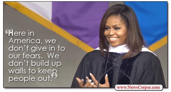 On Friday, Michelle Obama gave the last commencement speech that she will ever give as First Lady (video below, full transcript here). It took place at the City College Of New York and it was full of the inspirational vignettes that typically populate these ceremonies. What made it extraordinary was the unmistakable blows she landed on a particular political foe: